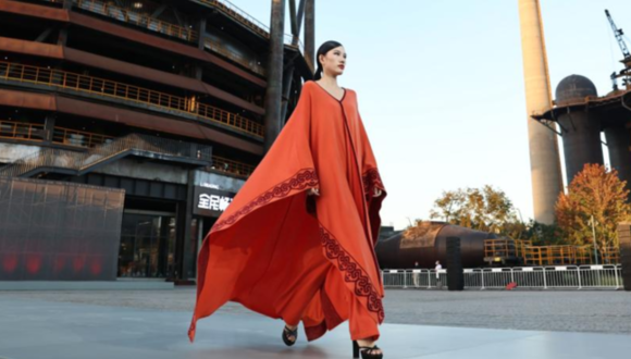 9月1日,模特在北京首钢园展示知名时装设计师房莹设计的时装。