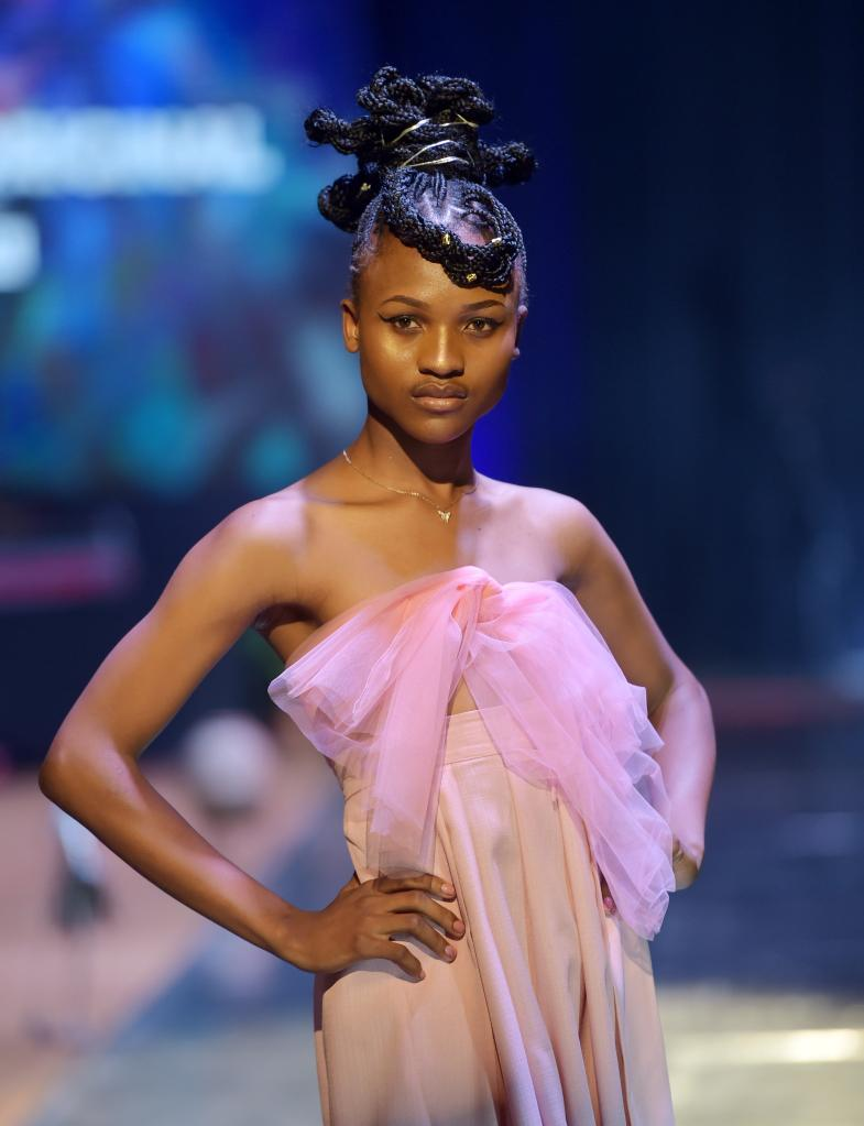 10月21日,一名模特在博茨瓦纳首都哈博罗内举办的“时尚无国界”时装秀上展示服装。
