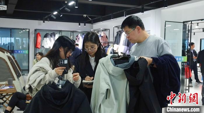 近日,顾客在台州三门选购冲锋衣。中新社记者 肖健 摄