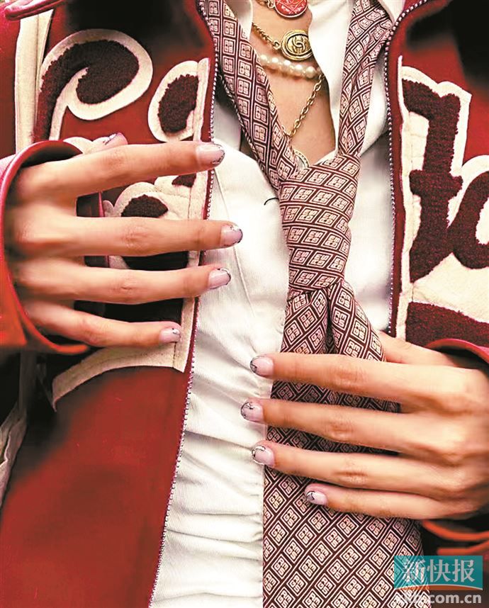 叛逆学院风更多强调“自在”,“不好好戴配饰”是自在态度的直接表达。标志性单品领带被叛逆学院风打破“必须工整”规则,松垮挂在颈间不打结、歪系成不对称蝴蝶结反戴在背后甚至用作腰带或包包挂饰,都是“失序”玩法。
