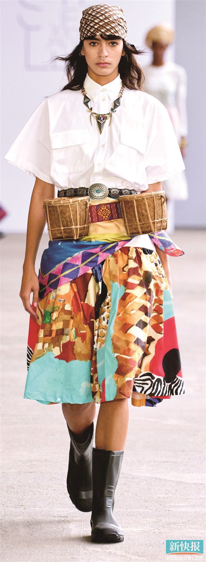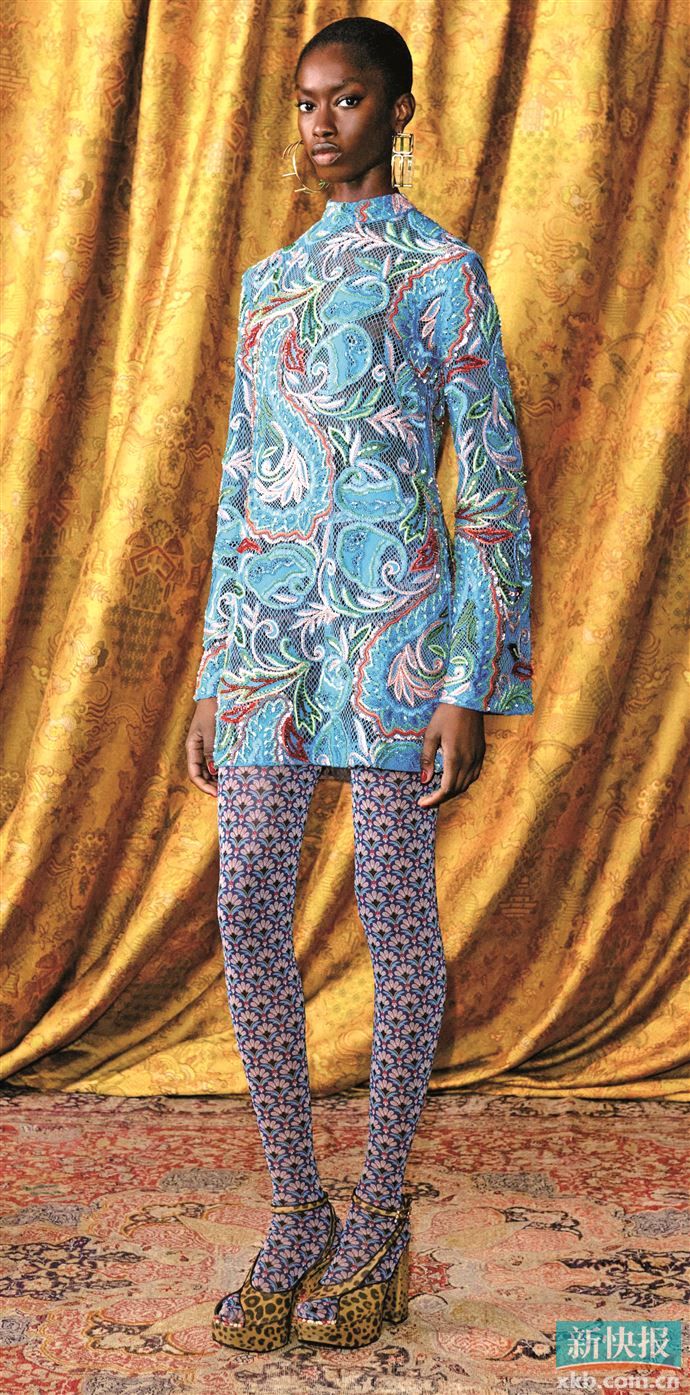 充满民族风情的图案拼接荷叶边与褶裥设计,为复古氛围注入艺术感。
