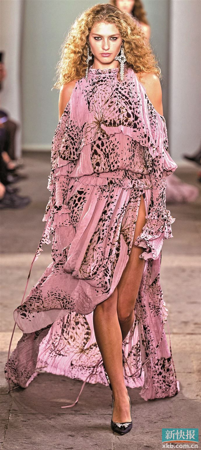 经典动物纹在浪漫波嬉中褪去了张扬的攻击性,成为自然灵性的温柔载体,低饱和度加柔化处理为核心,通过淡雅色彩、虚化轮廓与创意重组呈现朦胧野性美。强调弱化野性而强化柔美如选淡化色彩、缩小纹路比例、柔化边缘、材质拼接的动物纹单品,搭蕾丝领口与荷叶边下摆或用动物纹鞋履点缀碎花长裙,让野性元素成为温柔造型的点睛之笔。